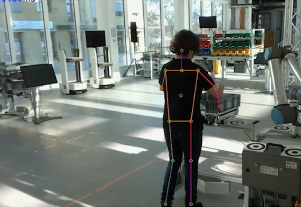 Fraunhofer IFF introduces an adaptive safety system that adjusts the robot’s speed instead of stopping entirely. Using multi-angle cameras for human pose estimation, the cobot calculates safe distances in real time and adapts movement accordingly. The MAPLE-K architecture ensures safety decisions are transparent, traceable, and compliant with defined operational limits. Runtime trustworthiness checkers evaluate system reliability and integrate findings into a digital twin, enabling live monitoring and visualisation of human–robot interactions.